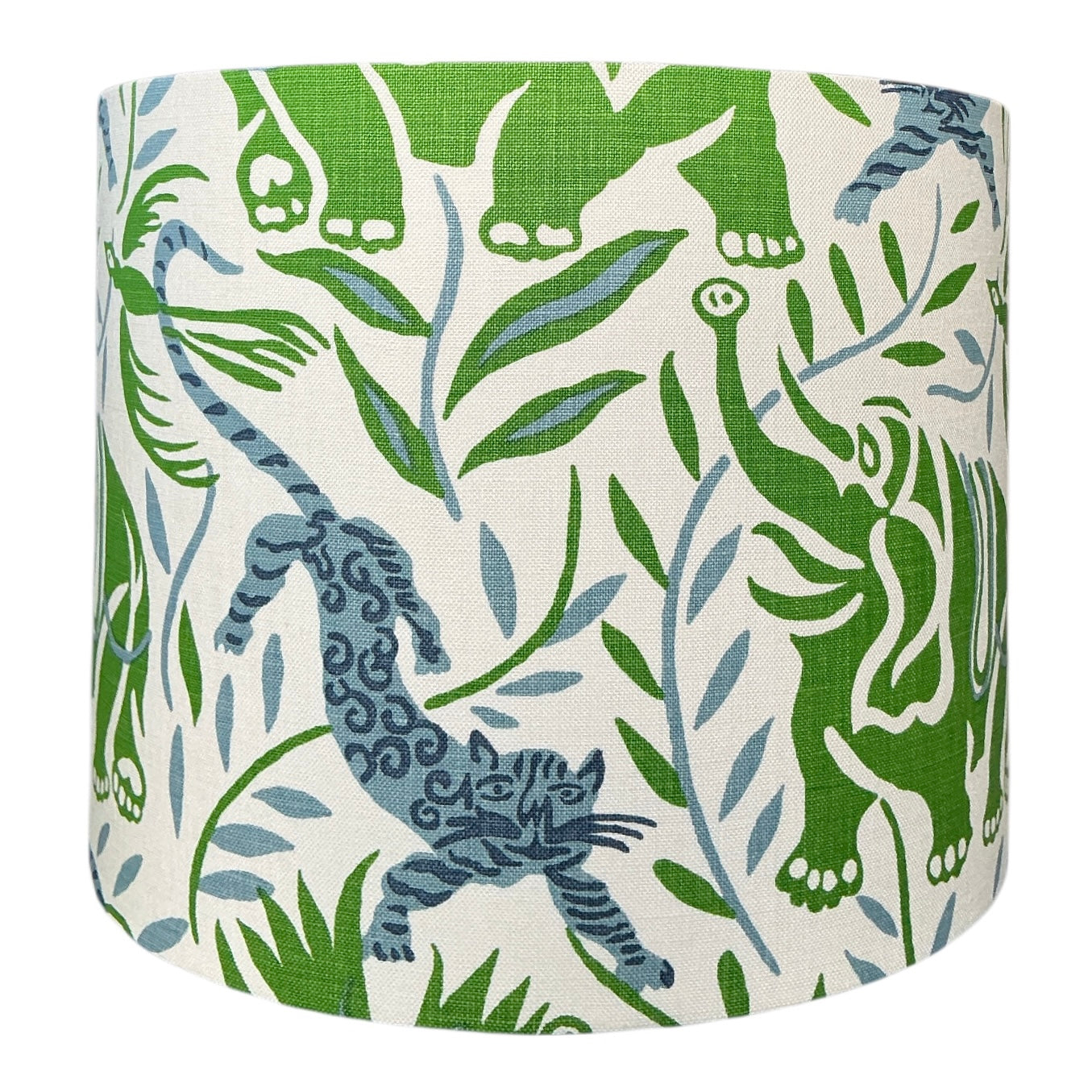 Jungle Raj is a beautiful Indian jungle scene featuring elephants and tigers in blue and green. This is a super rich fabric printed on 100%linen giving it a sophisticated and rich look. Eye catching and fun, this piece will add style and sophistication to any space.